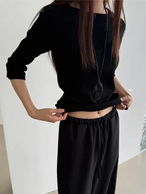 ストリングニットセミワイドパンツ