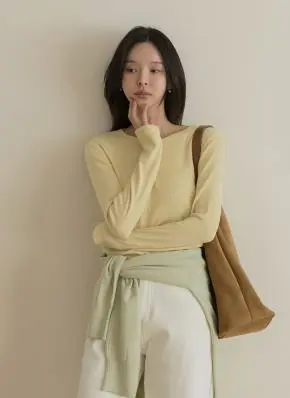 ラウンドネック長袖Tシャツ