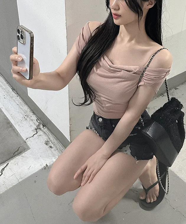 ちょっぴり肩が隠れる短い袖に