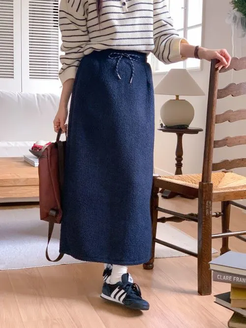 ニット裏起毛ウエストゴムスリットロングスカート