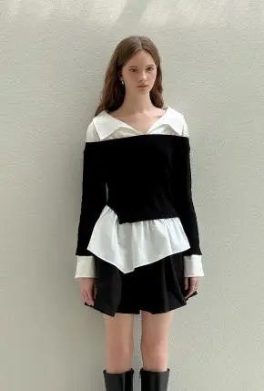 コンビ配色カラーベーシックレイヤード風長袖シャツ