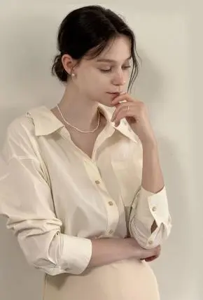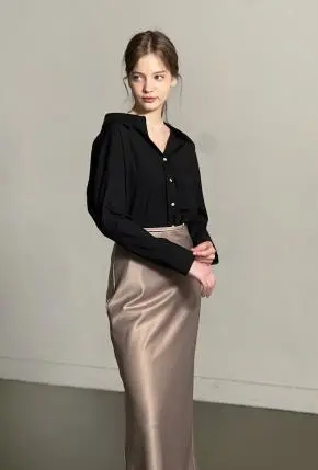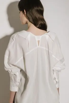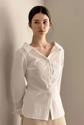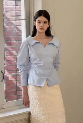 カラー長袖スリムギャザードレープシャツ