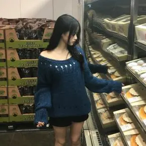 リブ長袖スリムオフショルダーニット