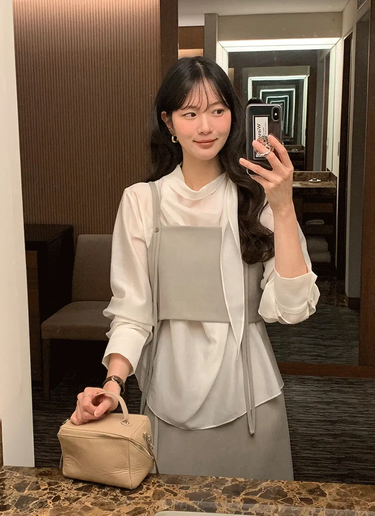 ニットVネックベーシックドローストリングベスト