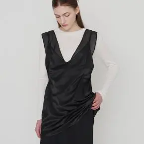 サテンレイヤードVネックピンタックサイドジップビスチェ