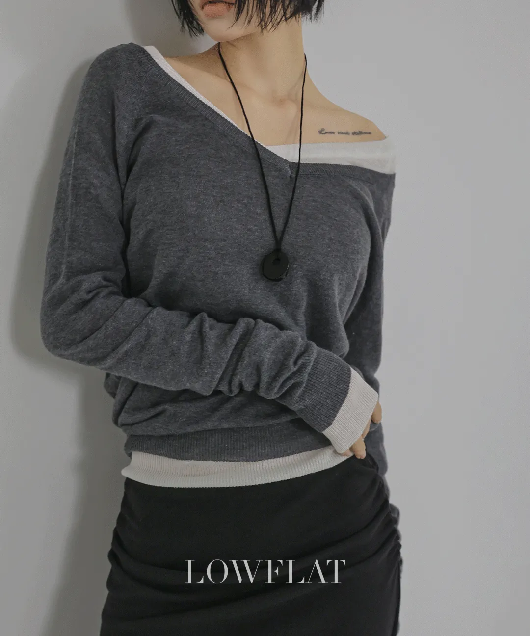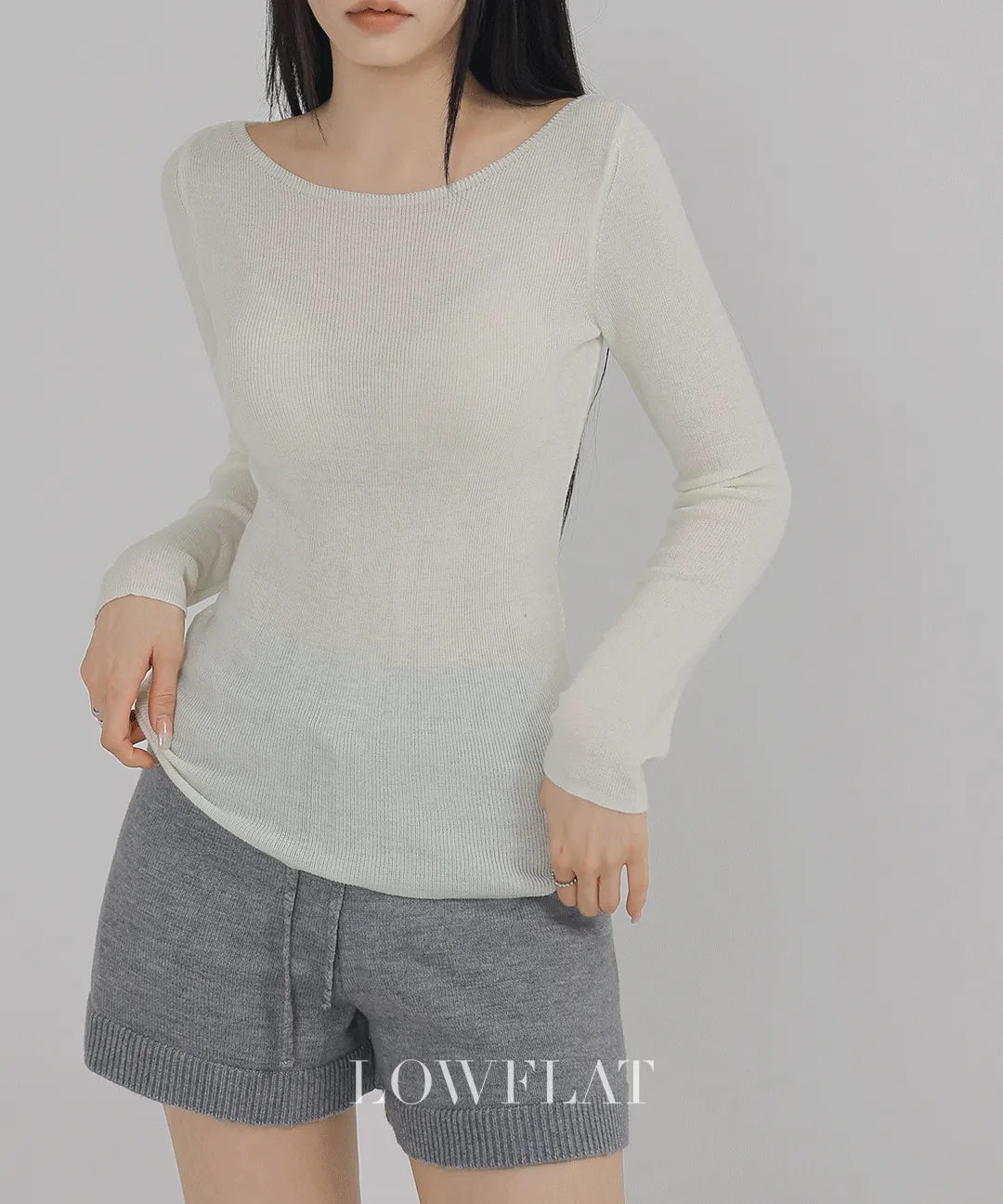 リブボートネックスリム長袖ニット