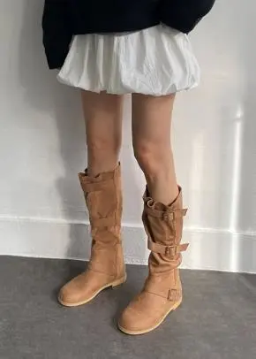 スエード調バックルウンドトゥブーツ