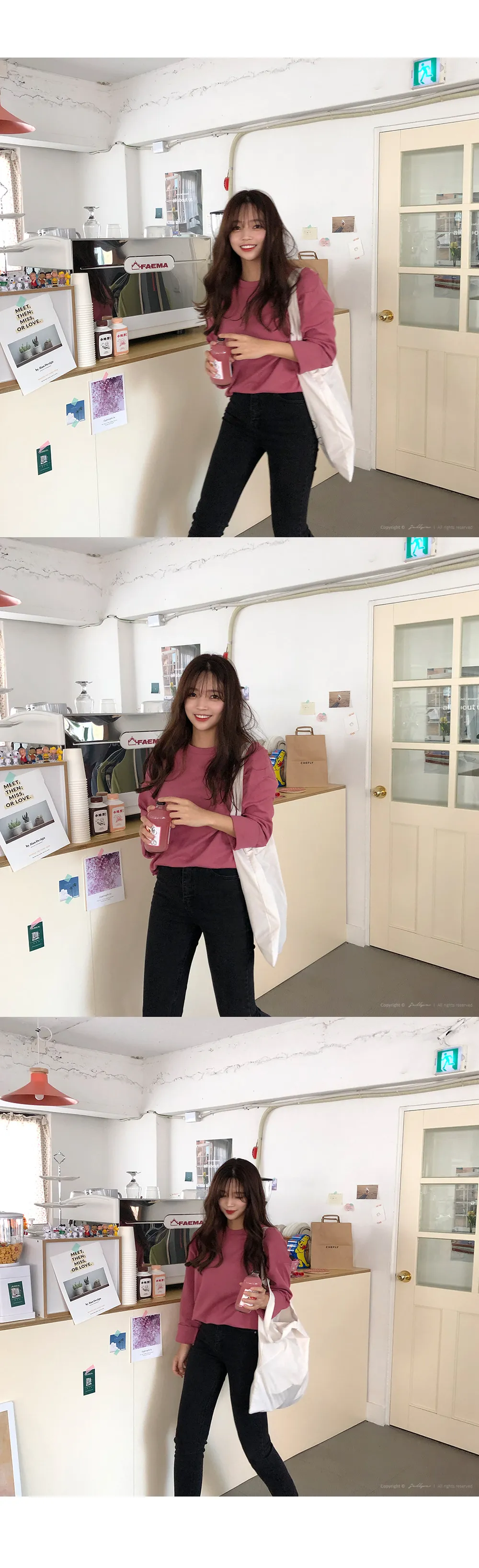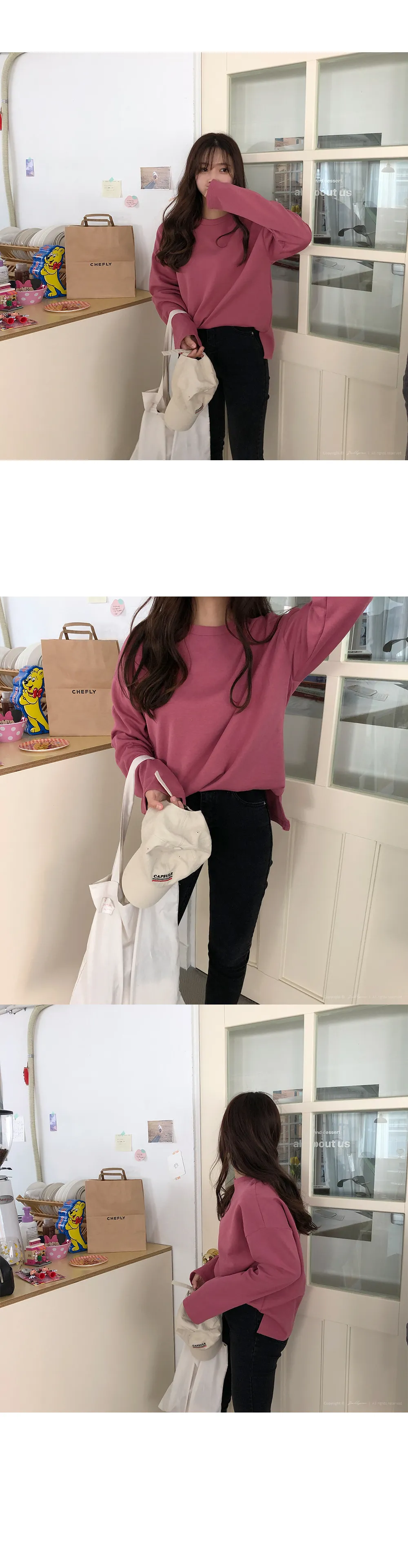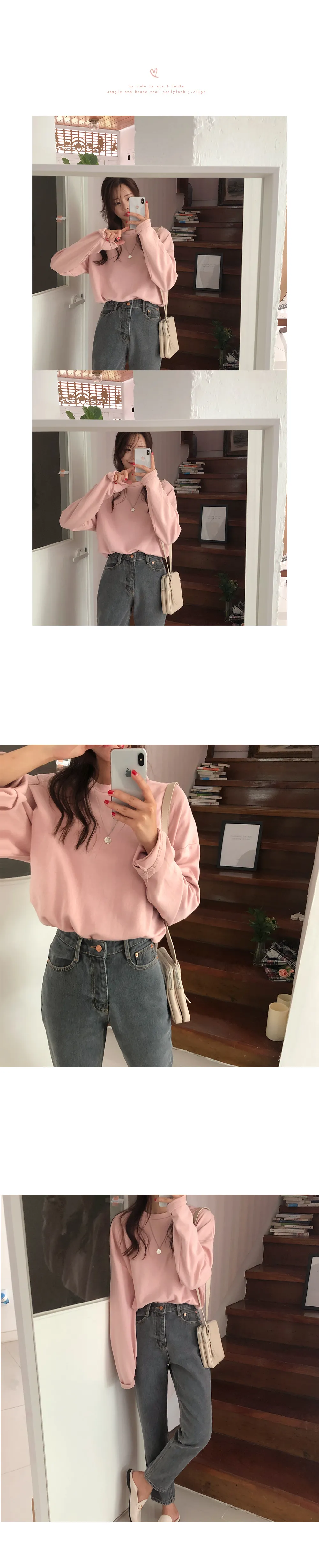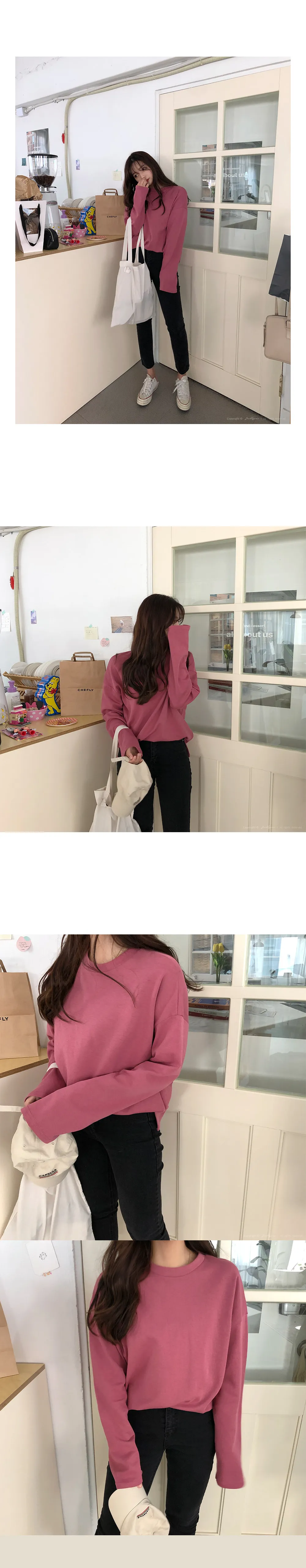 リブスリム長袖ベーシックボタンTシャツ