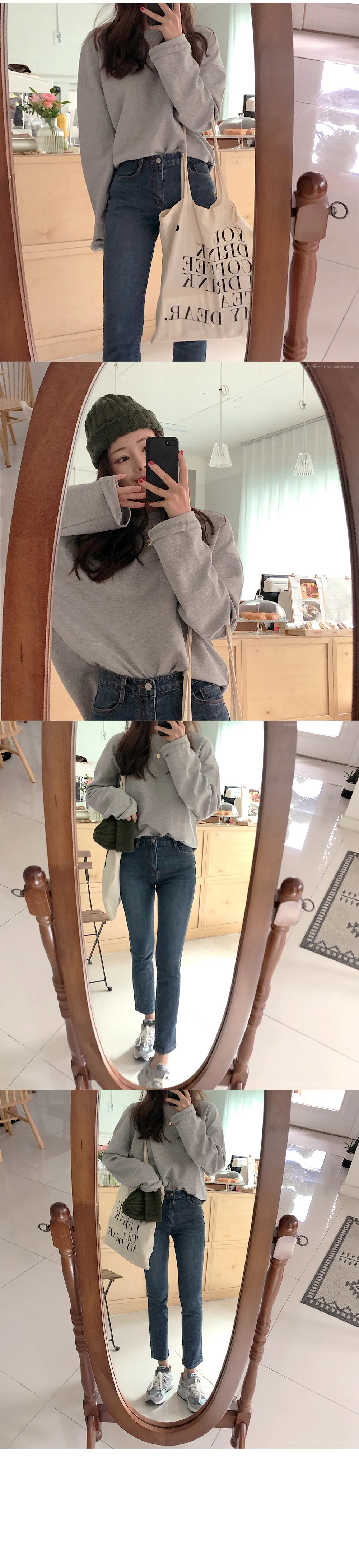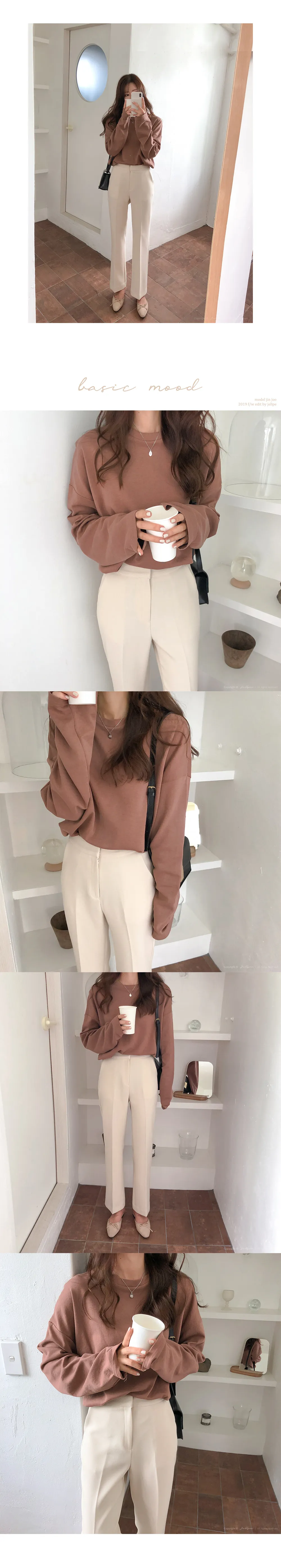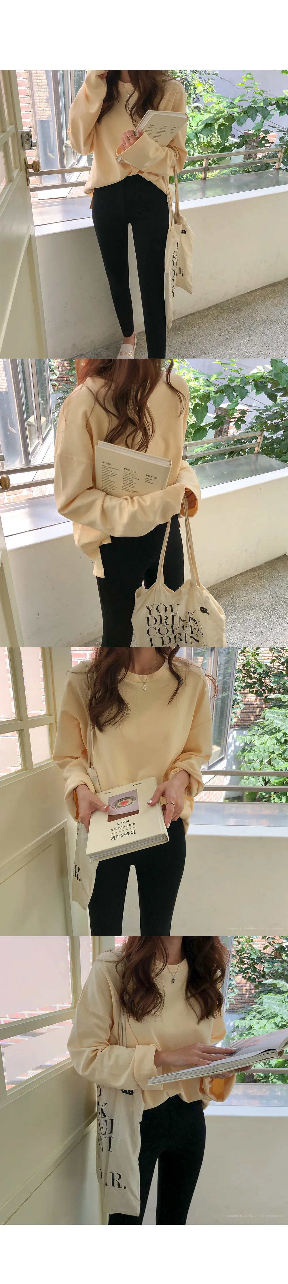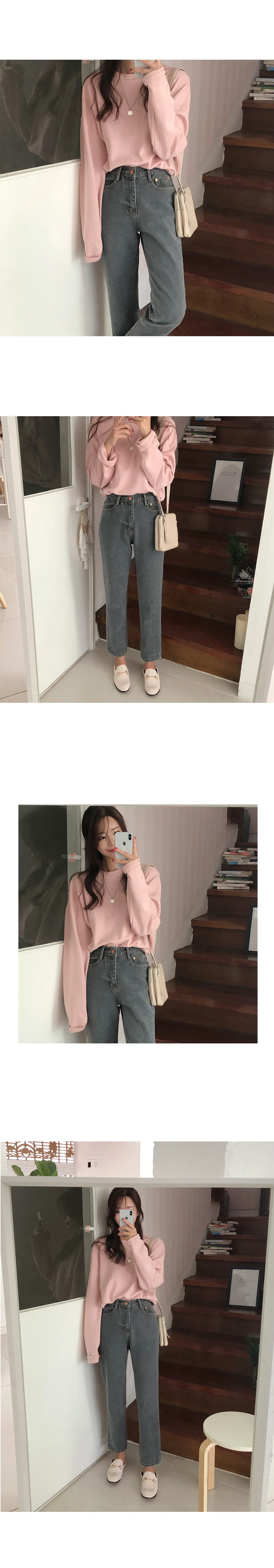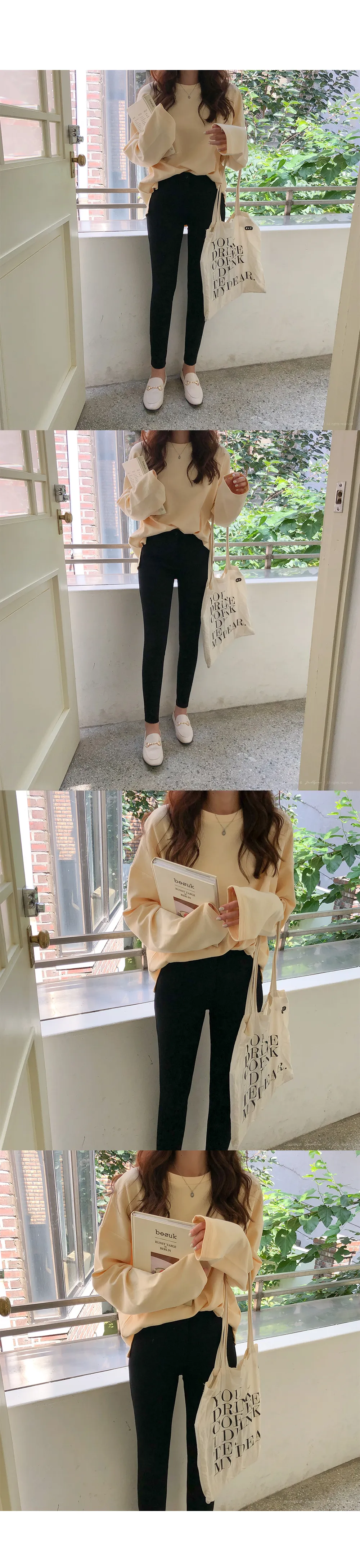 リブスリム長袖ベーシックボタンTシャツ