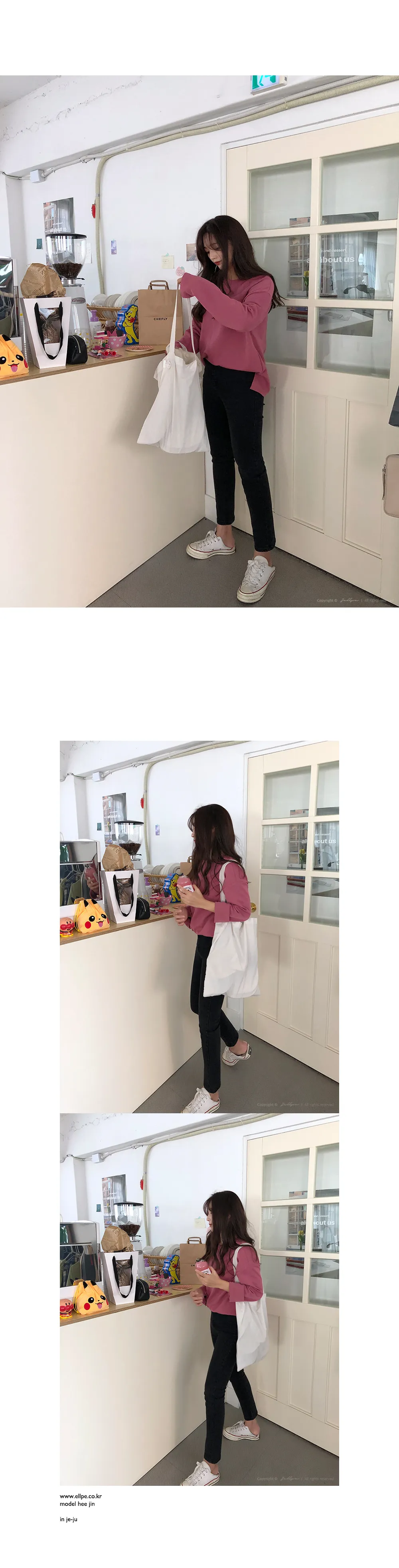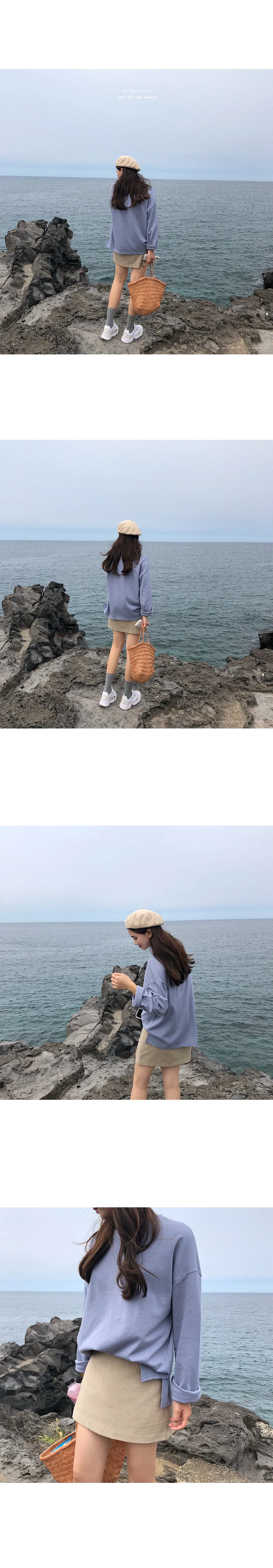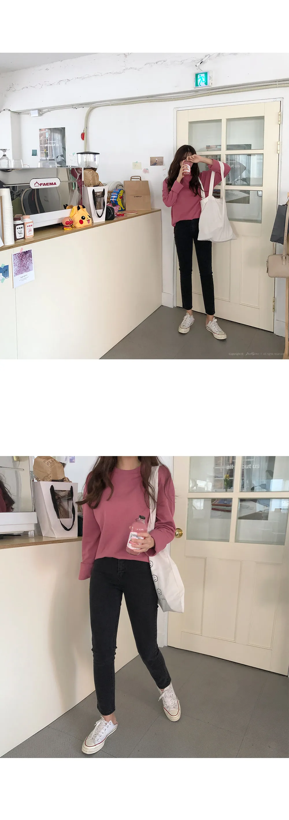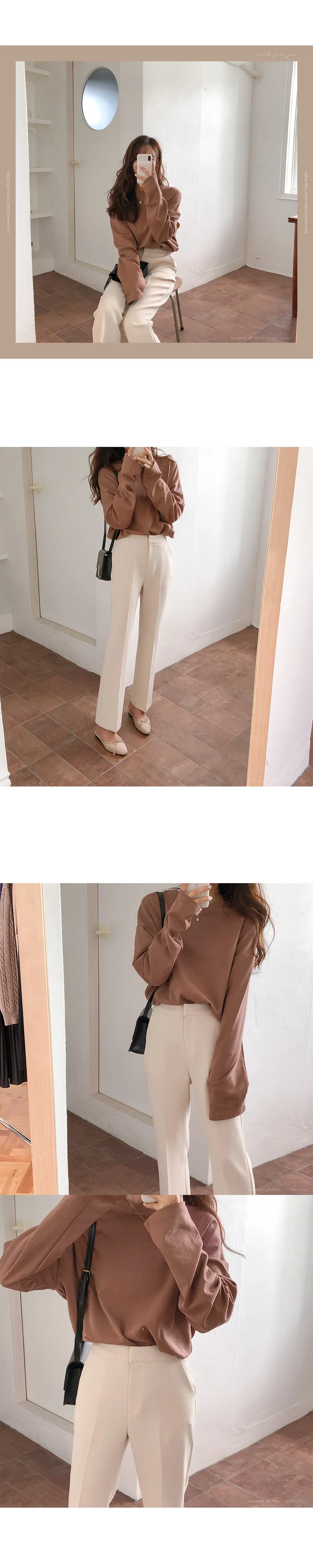 リブスリム長袖ベーシックボタンTシャツ