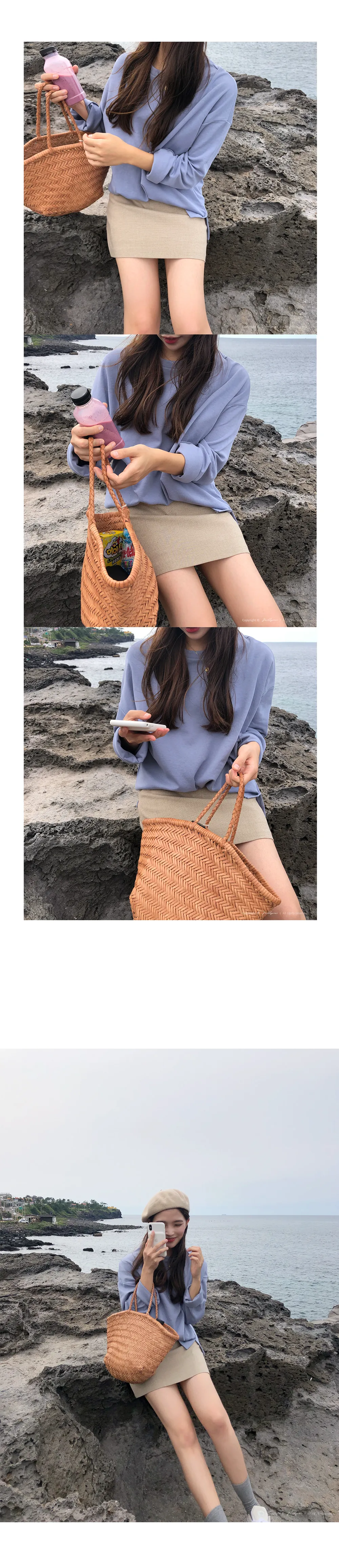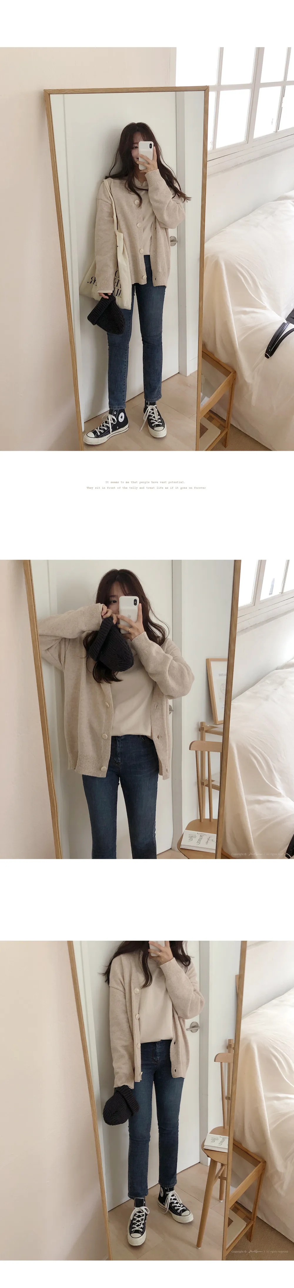 ラウンドネックルーズフェイクボタンダイアゴナルボタン