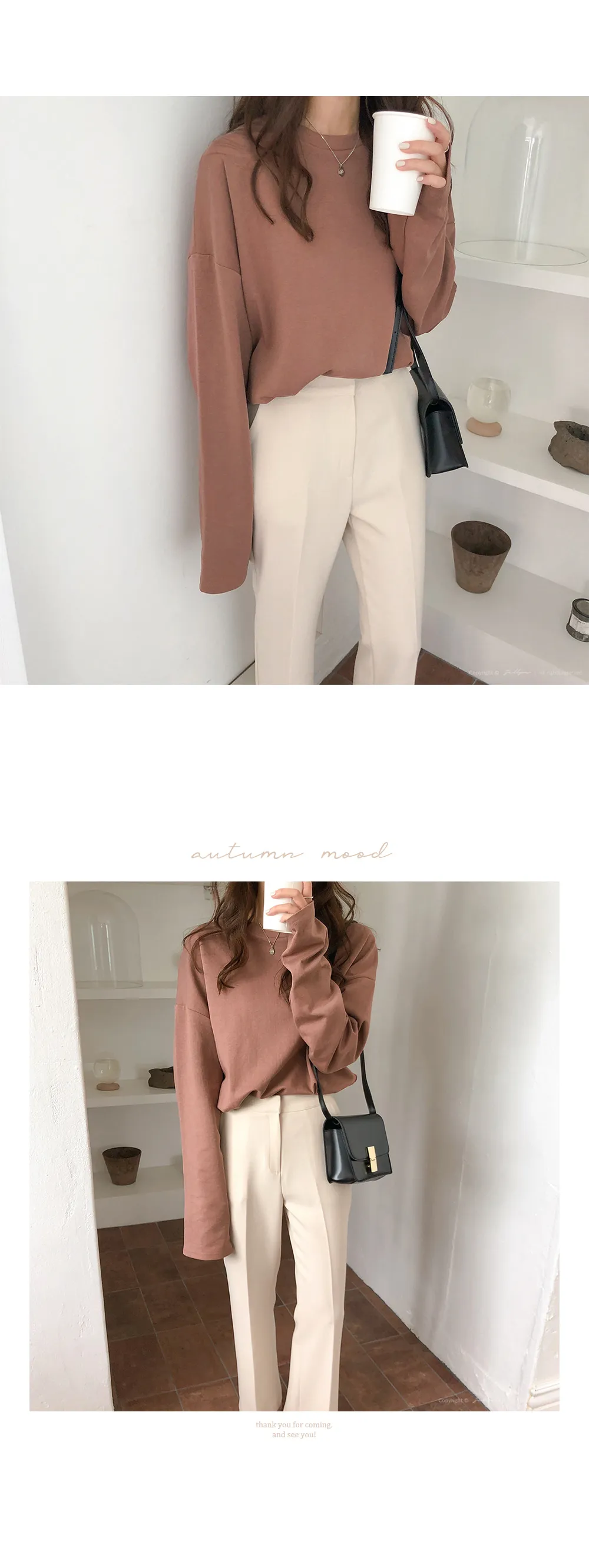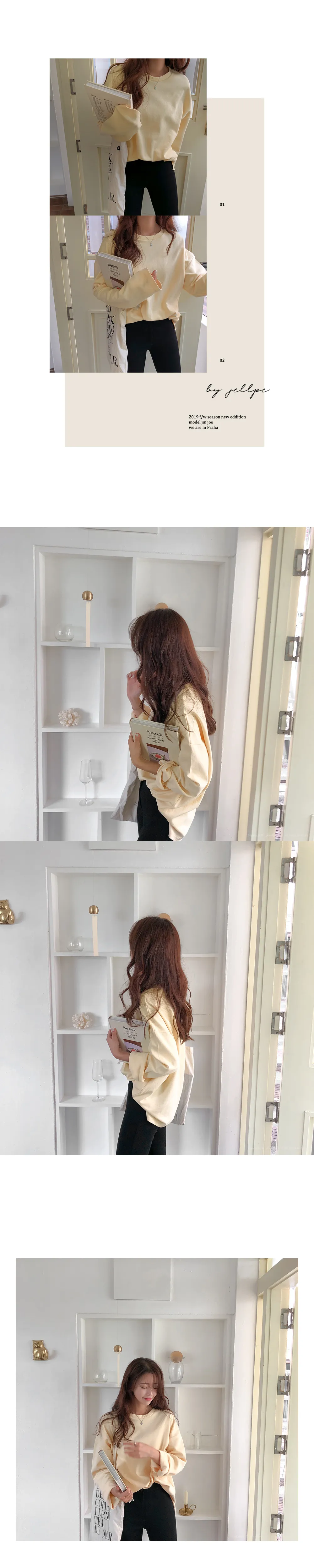 コットン長袖ベーシックラウンドネックパンチングTシャツ
