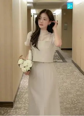 リブニットスリム長袖ボタンアンサンブルカーディガンベスト