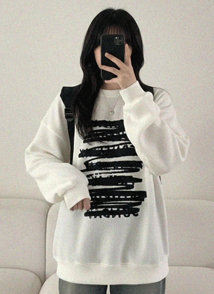 ラウンドネック長袖ルーズボクシー両面プリントスウェット