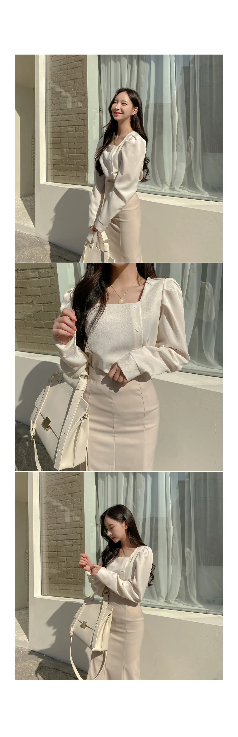 リブニットスリム長袖ボタンアンサンブルカーディガンベスト