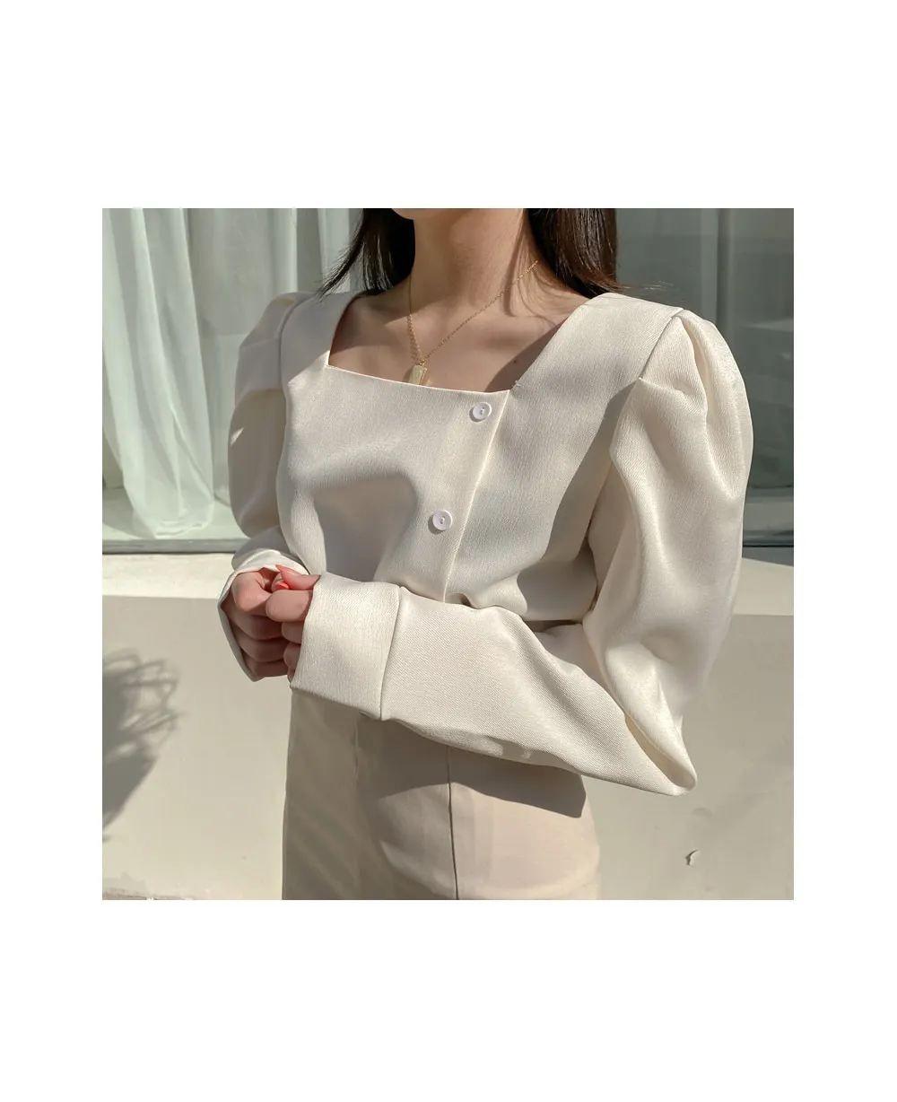 長袖リボンボタンカラーカラーシャツ