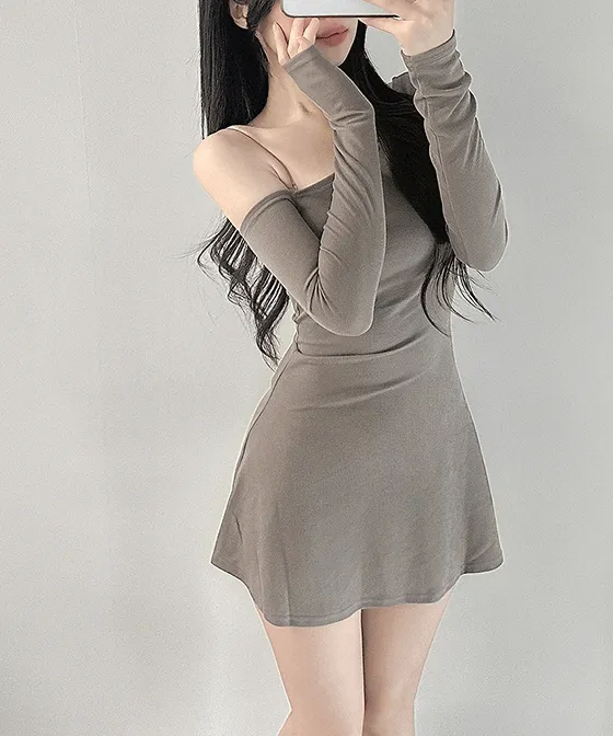 スリムフレアミニオフショルダーワンショルダーAラインワンピース