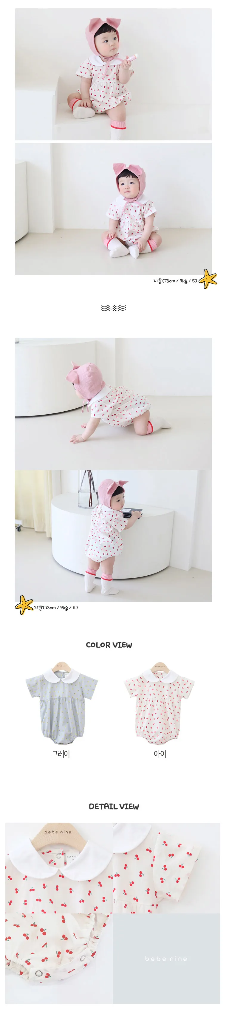 丸首チェリー柄ボディスーツ・p001449