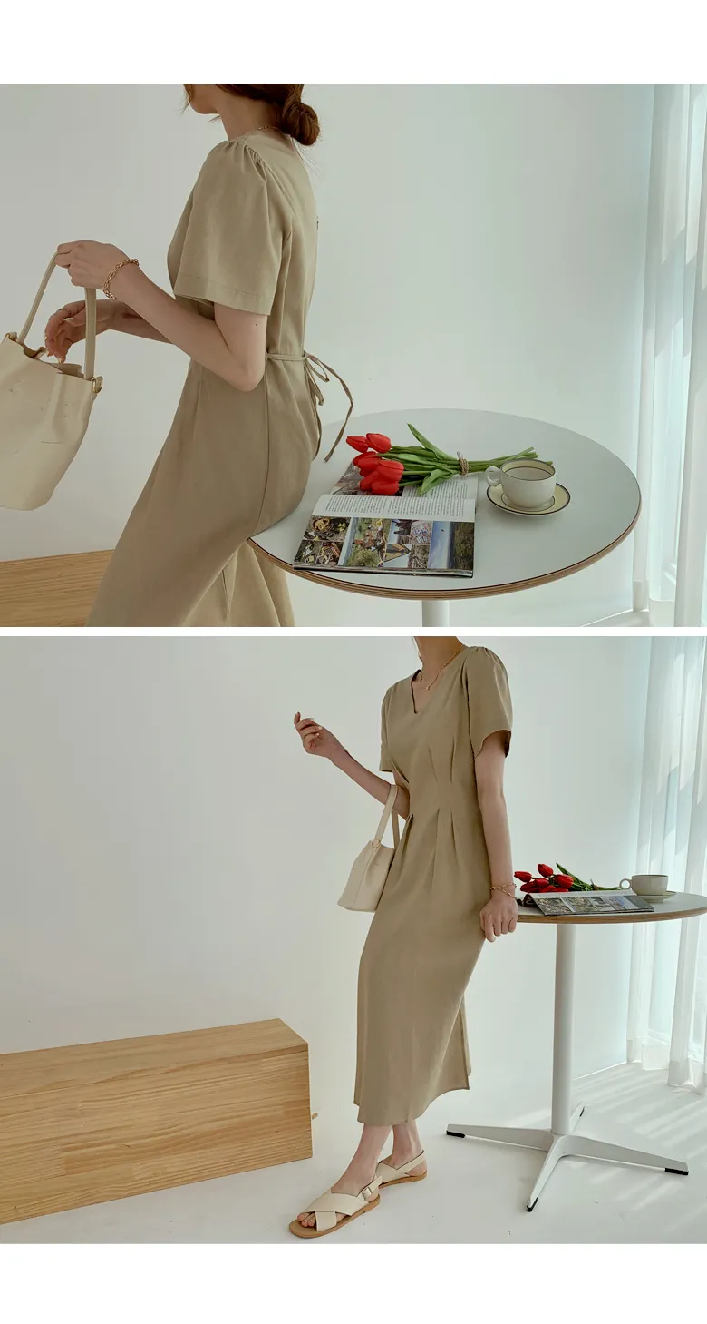 ドレープネックハーフスリーブワンピース