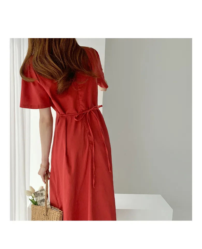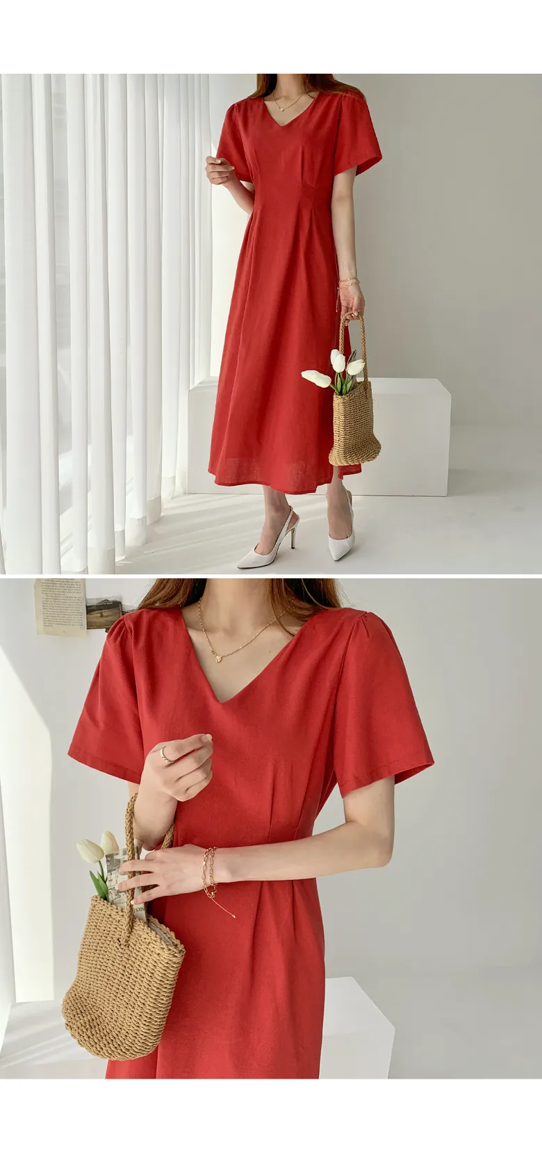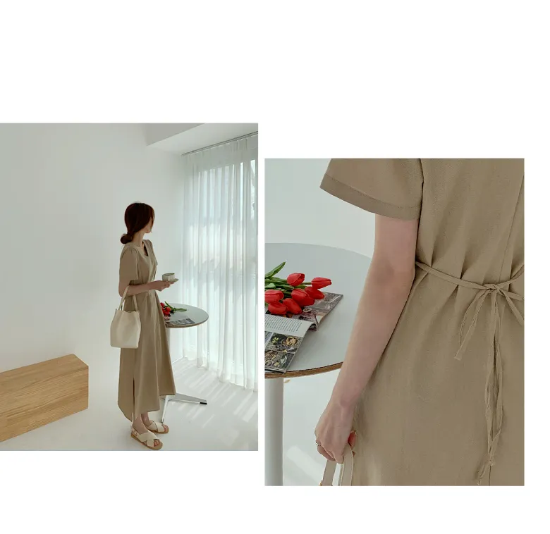 カラーネックラップIラインワンピース