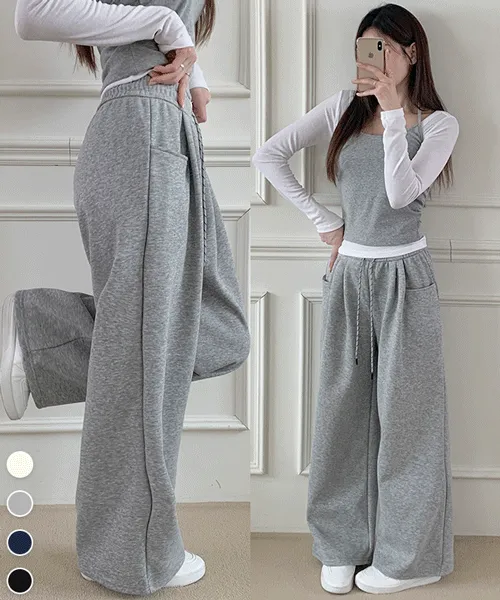 ワイドドローストリング無地トレーニングパンツ