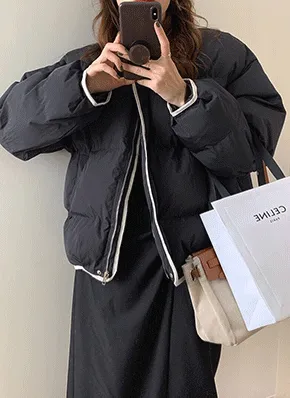 ダックダウンスナップボタンジップアップカラーダウンジャケット