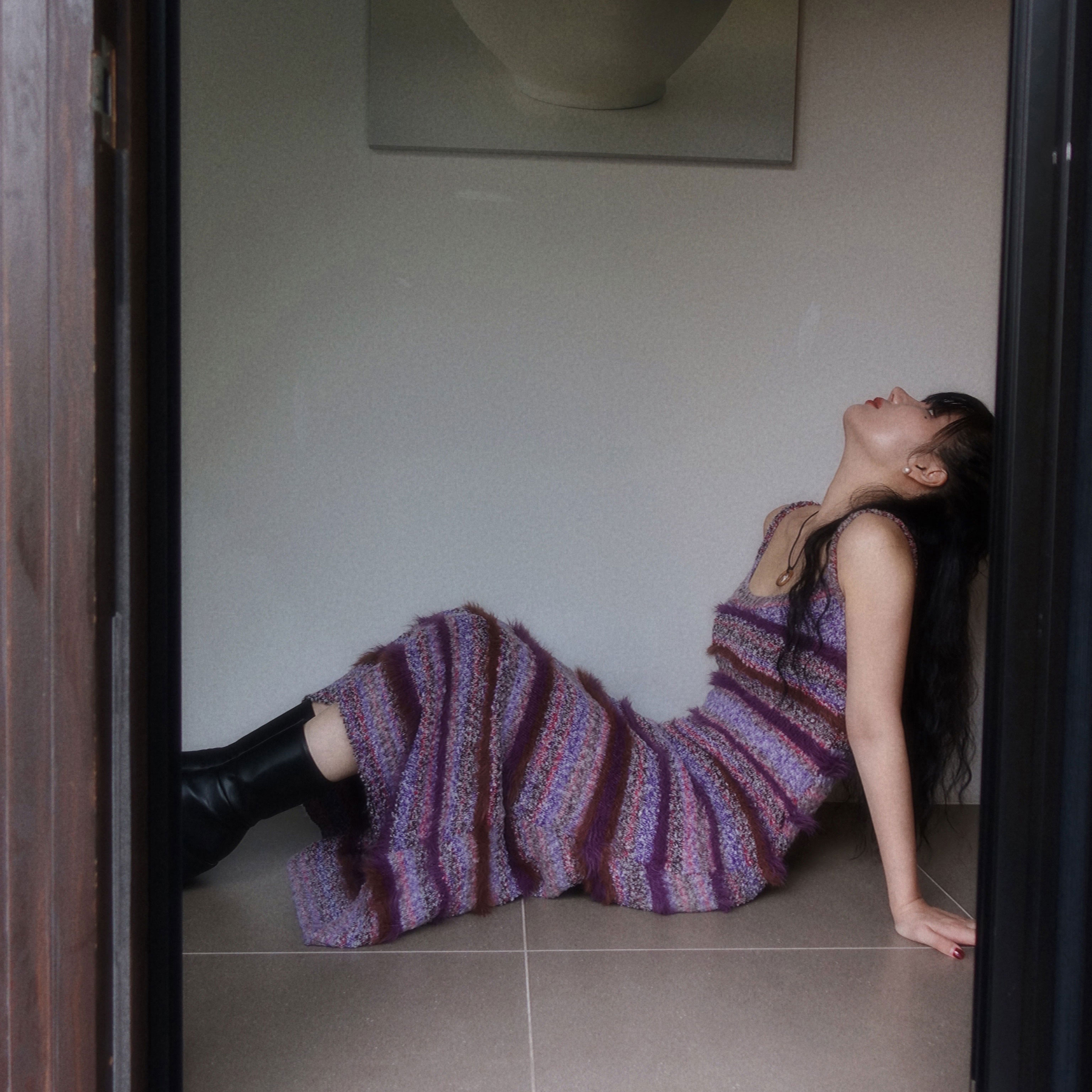 ラウンドマルチリブスリムニット
