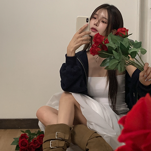 ソフトラウンドネック長袖クロップドニット