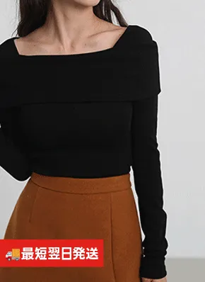オープンショルダースリムリブTシャツ・t01178
