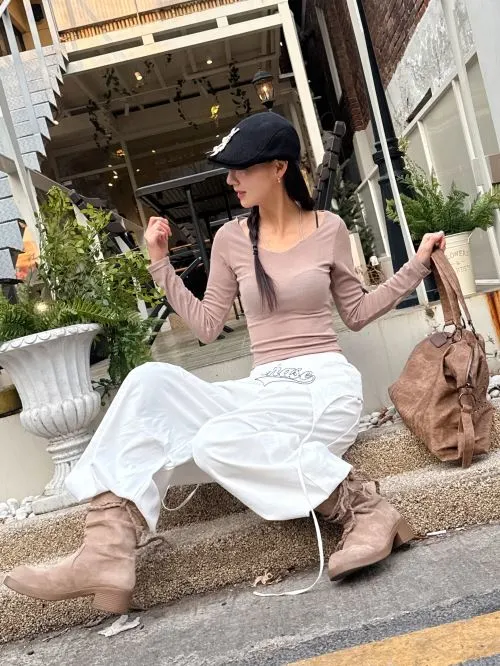 Uネックベーシックスリム長袖Tシャツ・B1962972