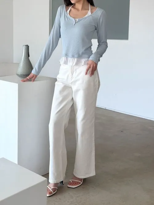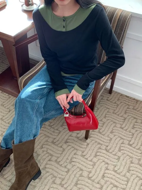 配色ホルターネックベーシックスリムレイヤード風長袖Tシャツ・B1961489