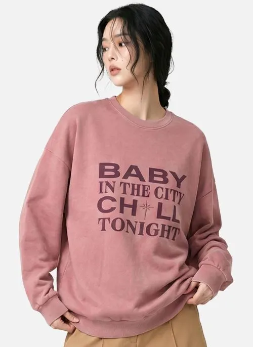 ラウンドネックオーバーサイズビッグプリントスウェット・B1961537