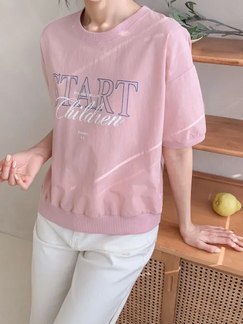 コットンラウンドネックベーシックラグラン半袖レタリングスウェット・B1962281