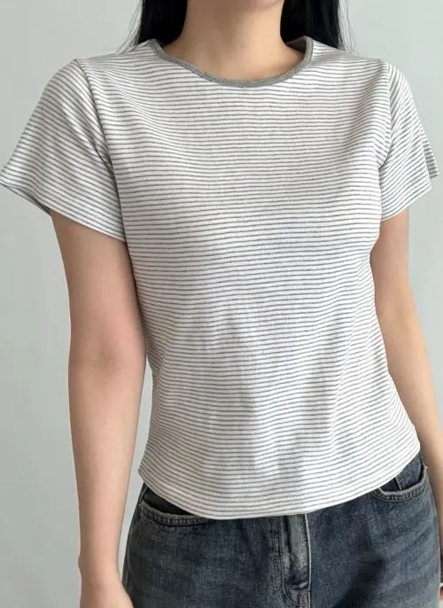 コットンラウンドネックベーシック半袖ボーダーTシャツ・B1962239