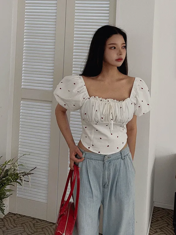 リボンボタンドローストリングパフスリーブブラウス・S1927020