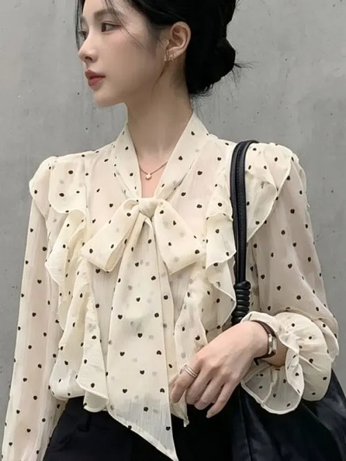 シースルーボウタイフリルベーシック長袖ドットブラウス・B1967561
