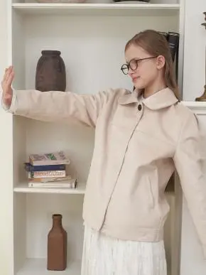 スエード調ラウンドネックピンタックポケットスナップボタンジャケット・S1965320