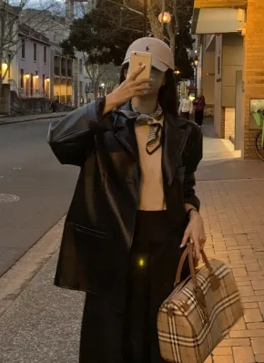エコレザークロップドブルゾンジャンパー・B010003