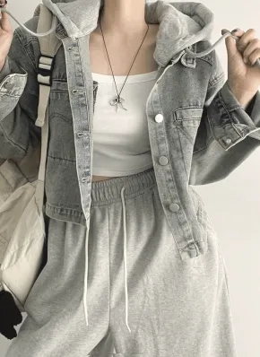フード付クロップドポケットデニムジャケット・p680947