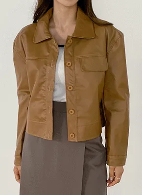 レザー調フラップカラージャケット・B008230