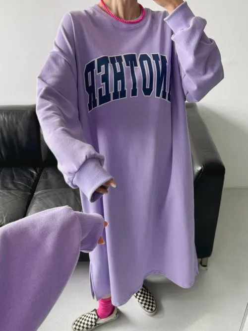 ラウンドネックスリットポケットオーバーサイズボクシーIラインロングプリントワンピース・B1959819