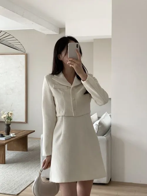 肩パッドオープンカラーライン長袖Aラインミニヒドゥンジッパー無地ワンピース・B1961946