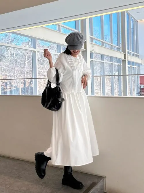 テクスチャーパフフレアワンピース・全4色・b00879