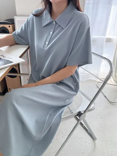 カラーオーバーサイズマキシハーフボタンルーズ半袖Hライン(ロング丈)ドロップショルダー無地ワンピース・B1963691