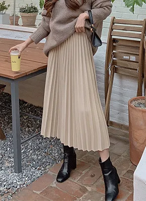 ウール混ロング丈プリーツスカート・p200819