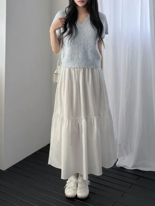 ティアードHラインウエストゴムラッフルシャーリング無地スカート・S1960453