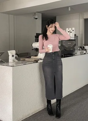 フロントスリットロングデニムスカート・p637639