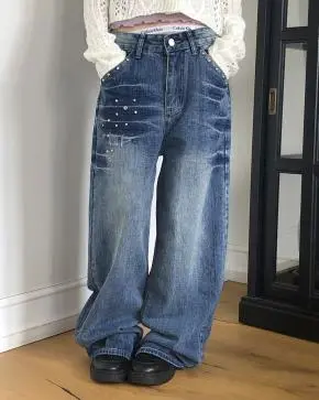 [選べる丈]ウォッシングワイドブーツカットディープブルーデニムパンツ・S1938398