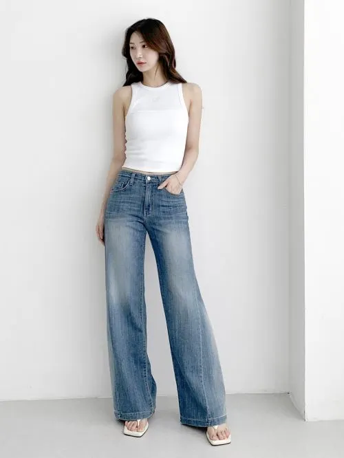 コットンワイドウォッシングライトブルーデニムパンツ・S1963771