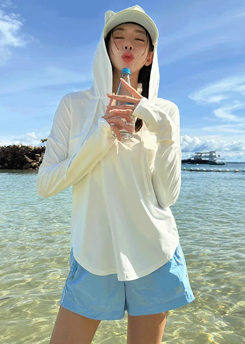 ストレッチボタンフードスリム長袖レッシュガード上着・S1963842